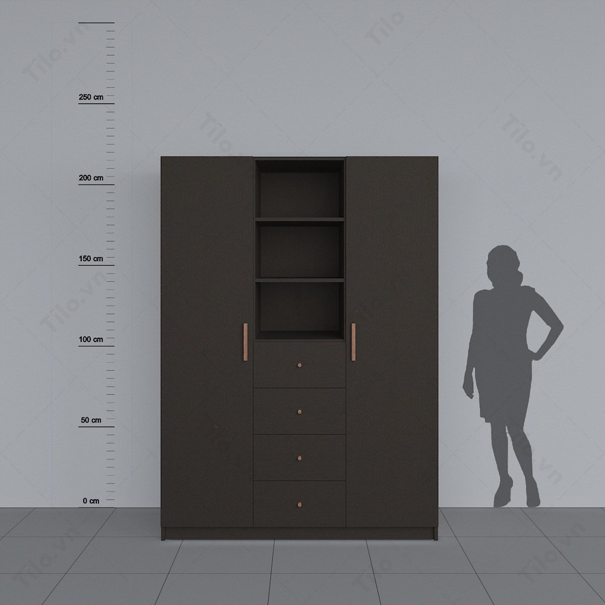 Tủ quần áo 3 buồng màu đen Giỏ hàng Giỏ hàng